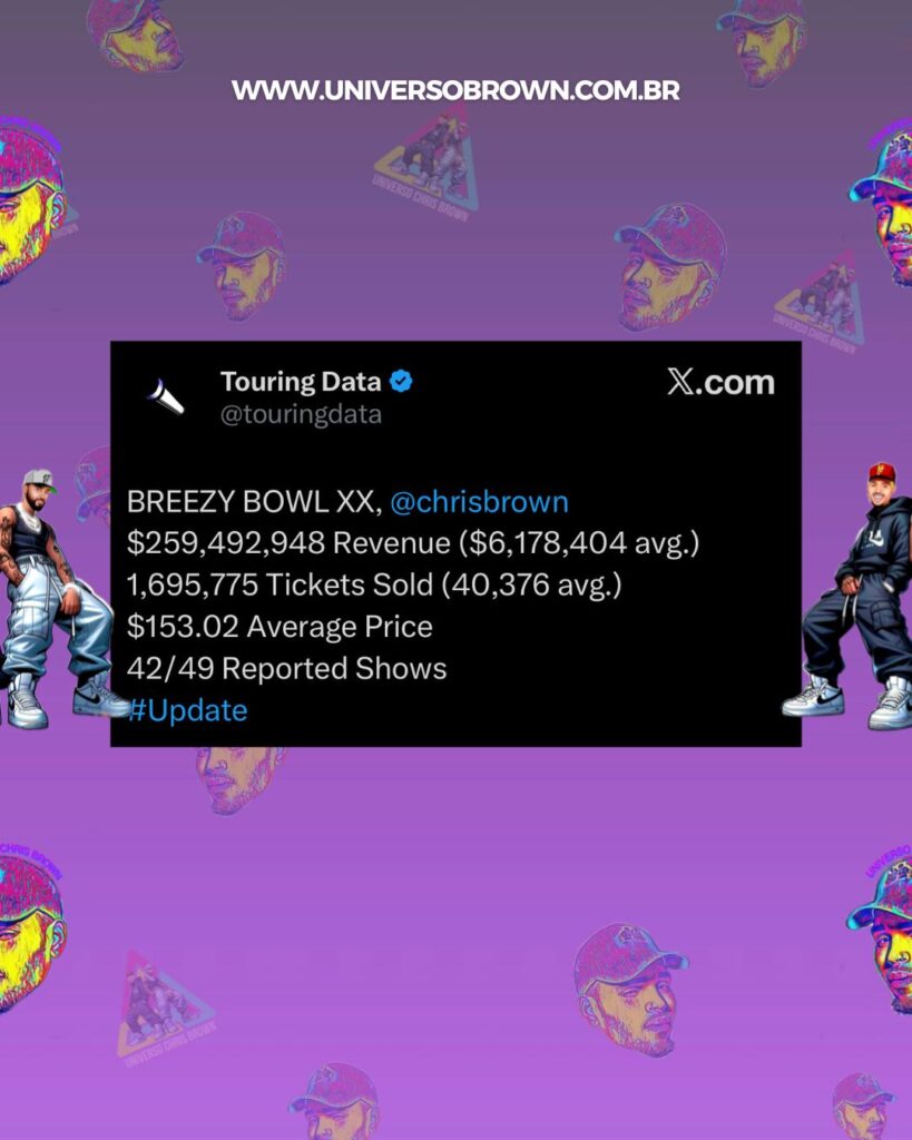 Até o momento, a turnê #breezybowl do Chris Brown, arrecadou $259.492.948 milhões de dólares!